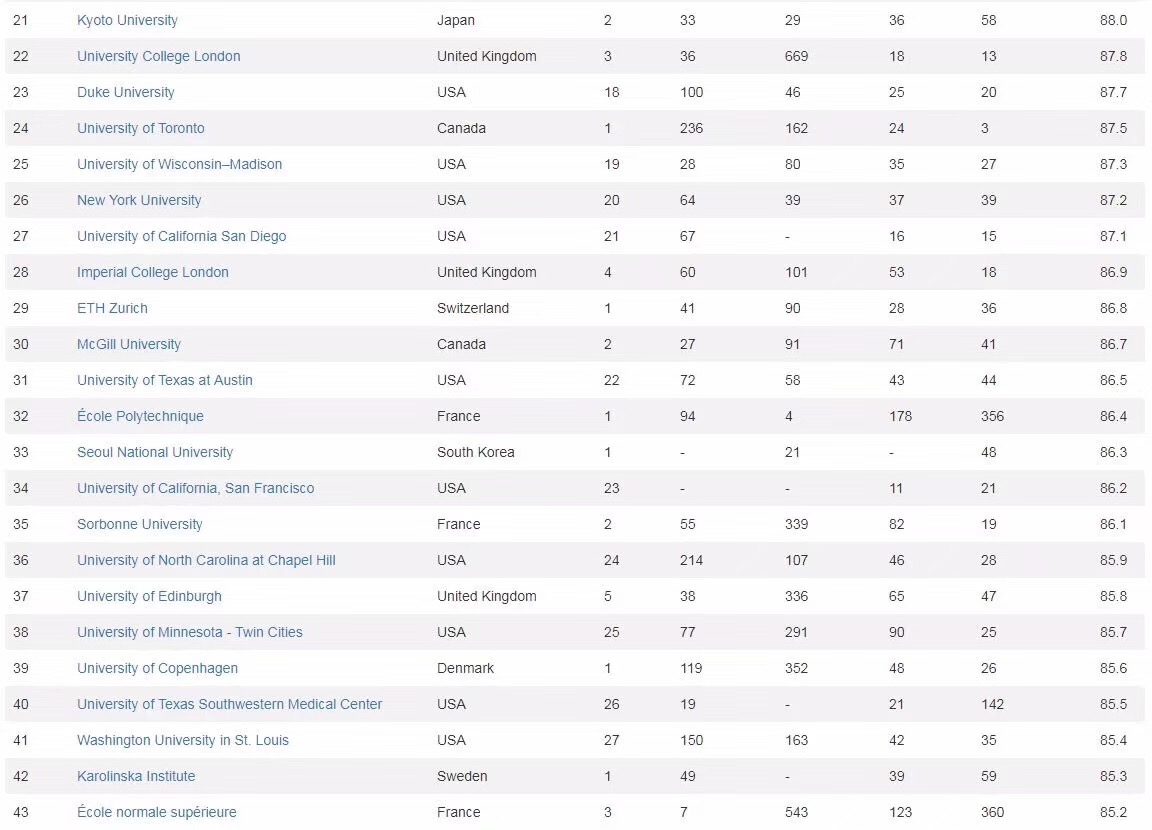 8、 专利 (5%): 依据学校获国际专利数量来评定。