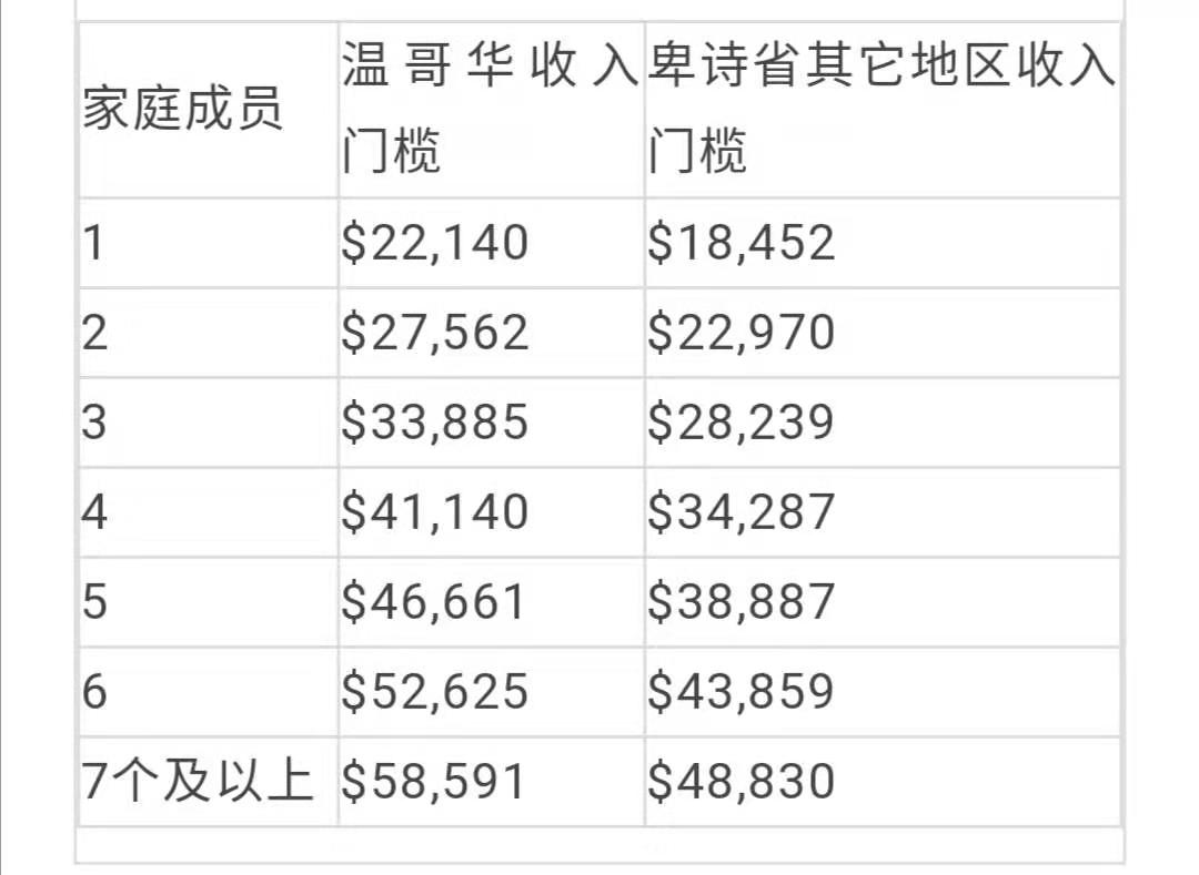 7.家庭收入门槛不低于以下水平: