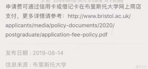 从2019年10月开始,申请以下课程需要缴纳50英镑申请费,更多详情请戳图: