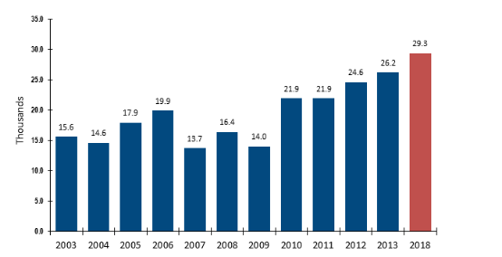 幼儿(学前)教师从业人数并不多,澳洲政府2013年11年底统计数据显示为26200人。该职业是从2009年起,一直处于持续增长的状态,澳洲政府预测2014-2018年,增长趋势将持续下去。
