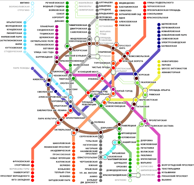 莫斯科地铁,全称为列宁莫斯科市地铁系统(Московский метрополитен имени В. И. Ленина),被公认为世界上最漂亮的地铁,按运营路线长度为全球第五大地铁系统,按年客流量为全球第四繁忙暨亚洲以外第一繁忙的地铁系统。
