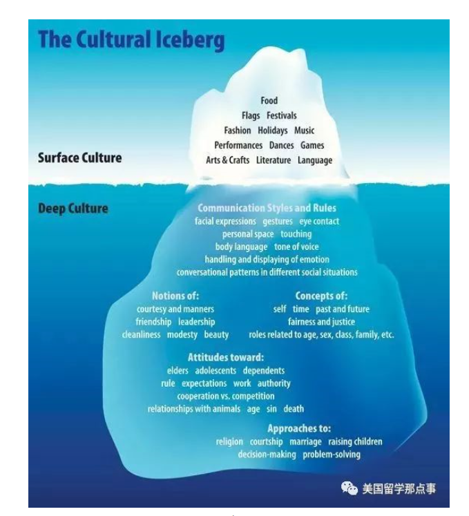 很多时候,人们会用冰山模型”把文化的各个表现地描述成一座冰山。