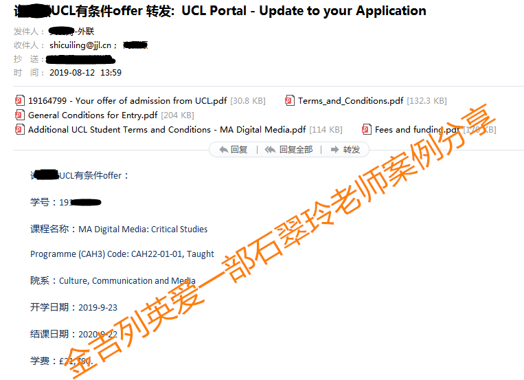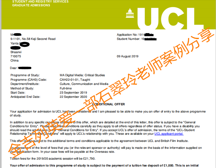 这个学生其实已经拿到英国其它大学的录取,并且已经决定入读其它大学,拿到签证,已经到学校报到注册了;这个时间点UCL的录取才到,其实是不可能入读的,只是证明我们学生是拿到这个学校的录取;所以大家今年英国的申请一定尽量早点进行,避免到时offer拿到的晚,错失了选择的机会。