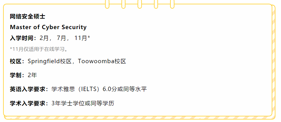 南昆士兰大学(USQ)的网络安全硕士课程有以下三个专业方向供学生选择: