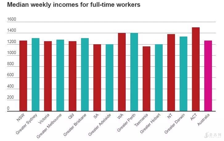 由此看来,应该是之前大家为了拿州担移民,大量人才涌入 首都ACT地区导致的吧。如果大家还想要了解关于首都ACT地区的州担要求,令我没想到的是,州担大热地区塔州的薪资居然排在最后,每周平均周薪为$1379.2澳币,年薪为$71718.4澳币。