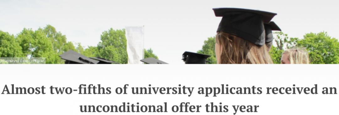 此前,官方报告显示,尽管政府在尽可能的控制无条件录取的人数,今年仍有近五分之二的英国大学申请者收到了无条件录取通知书。