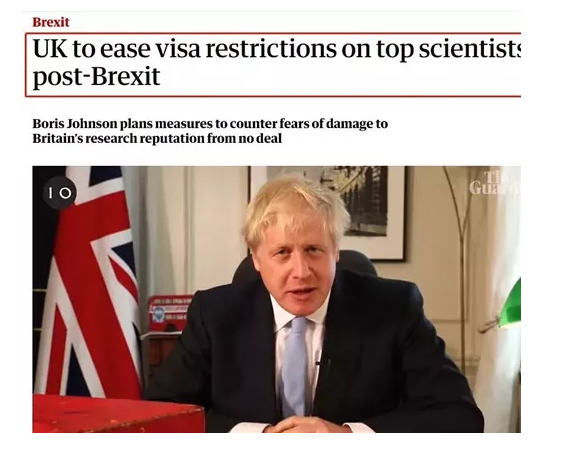 而约翰逊宣布的这一新政,其实就是考虑到英国脱欧后的问题。他知道,一旦英国脱欧,势必会导致科学家短缺、研究人员流失等问题,而这项移民新政策,将会在全球范围内抢夺最优秀的人才,不局限于欧盟,以此来解决脱欧后可能出现的人才短缺问题。
