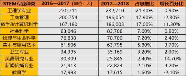 2017—2018 年十大热门 STEM 专业
