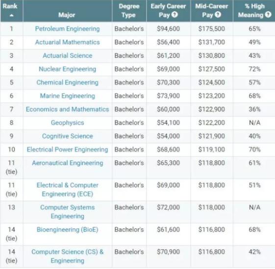 从历年数据显示出, STEM 专业毕业的学生薪资水平普遍高于非 STEM 专业毕业生,在 2018 年美国薪酬专业排名中,前十专业基本都是 STEM 专业。