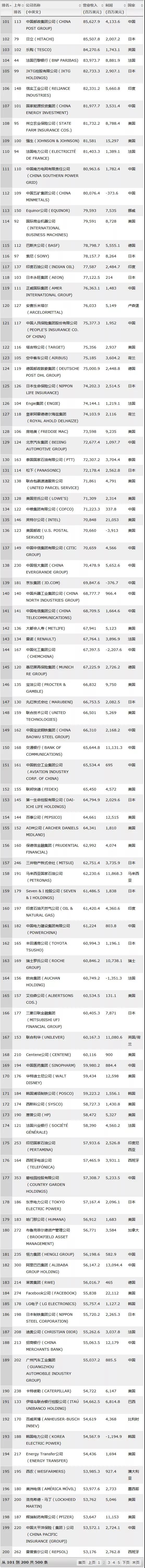 今年上榜的互联网相关公司共有7家 ,除新上榜的小米外,其余6家排名较去年均有提升,分别为来自中美两国的京东、阿里巴巴、腾讯、亚马逊、谷歌母公司Alphabet和Facebook。