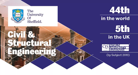 2019QS世界大学的专业排名榜,就把谢菲尔德大学土木与结构工程学系(Department of Civil an Structural Engineering)列为全球44,全英第5!