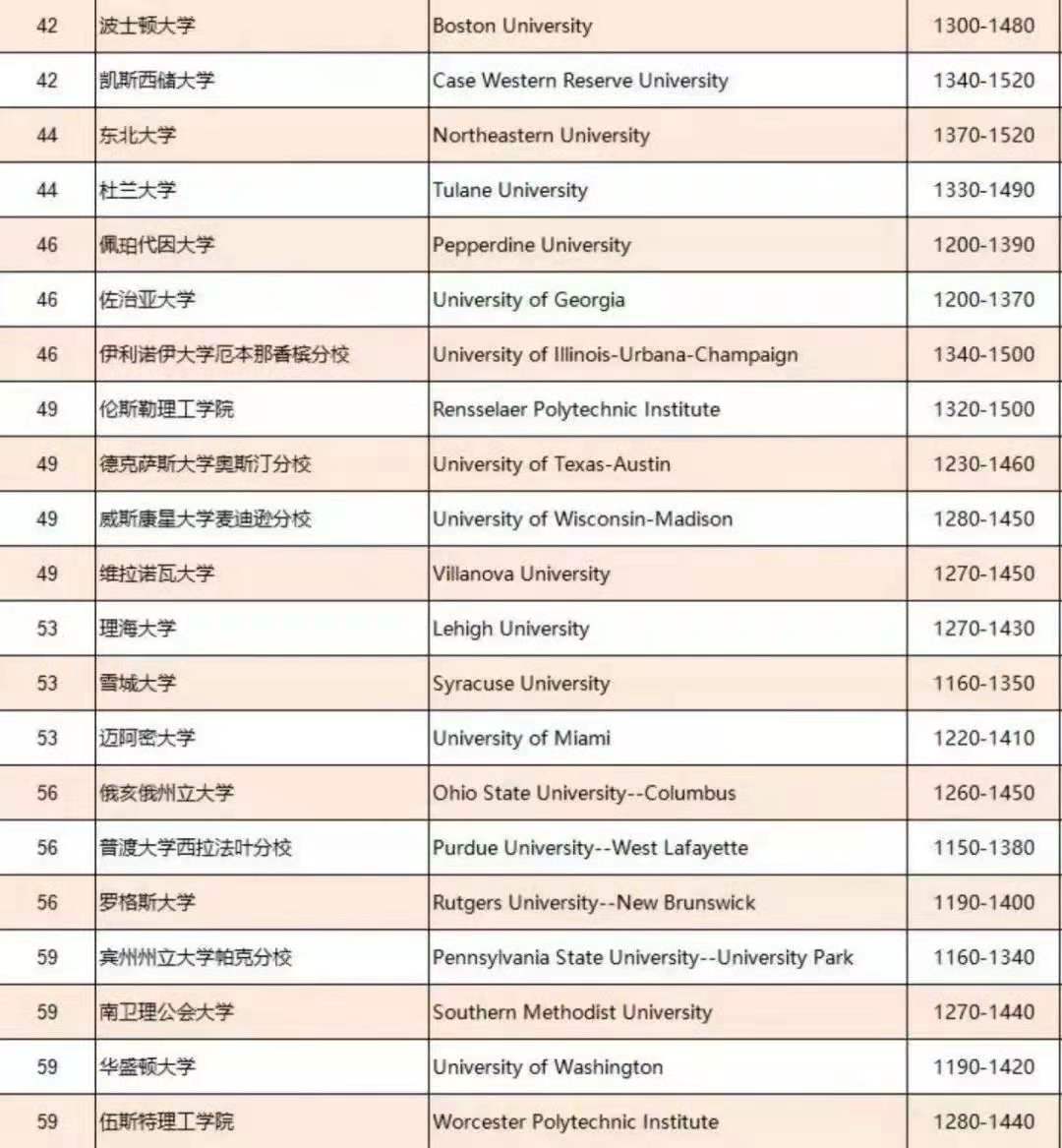 SAT 是在申请美国学校中重要的参考成绩,最新的 8.24 北美的 SAT也 刚刚结束。Business Insier 对于美国各个排名段的大学历史录取分数做了一个统计分析。