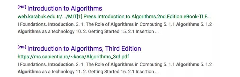 以《Introuction to Algorithm(算法导论)》为例,谷歌搜索前位就有PDF版本了。