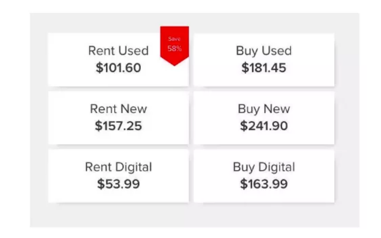 如果要花钱在美国买书,按书的价格从高到低排列,我们的选择一般有六种,分别是: 购买新书、购买旧书、租赁新书、租赁旧书、购买电子书、租赁电子书。