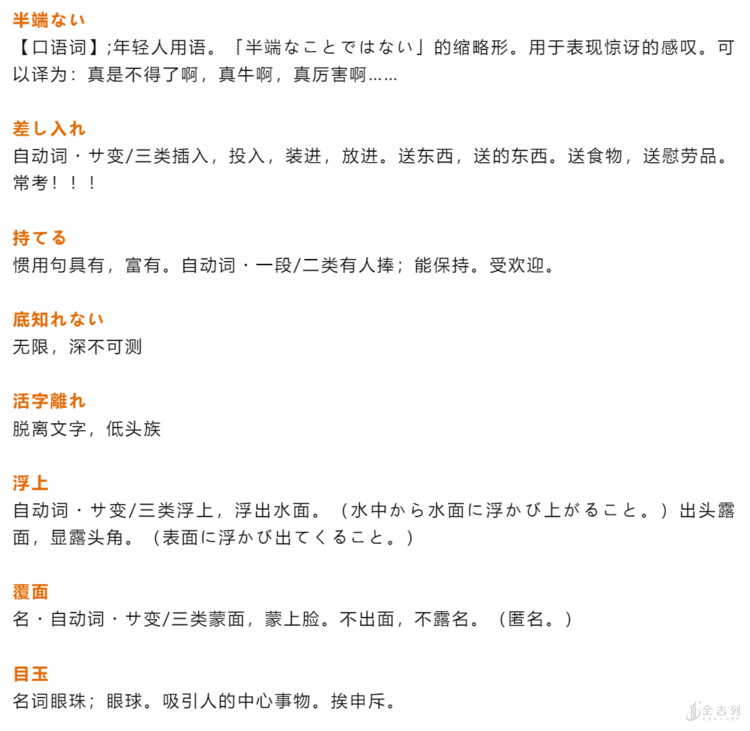 千言万语,还是希望大家的词汇量一定要上来。下面就给大家罗列一些大家 平常书本不太常见,N1又常考的词汇 。