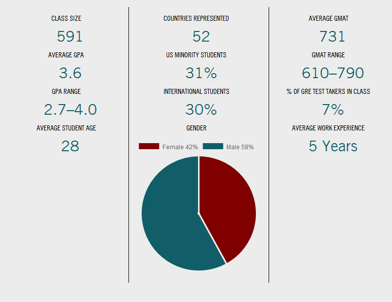 Booth商学院没有对工作经验和提前课程做何要求,但是没有明确要求不代表不需要,从布斯商学院公示的录取数据来看,Full-time MBA专业录取新生平均工作经验5年,平均GPA3.6,平均年龄28岁,国际生占比30%,GMAT平均分达到了731.(Range 610-790)。