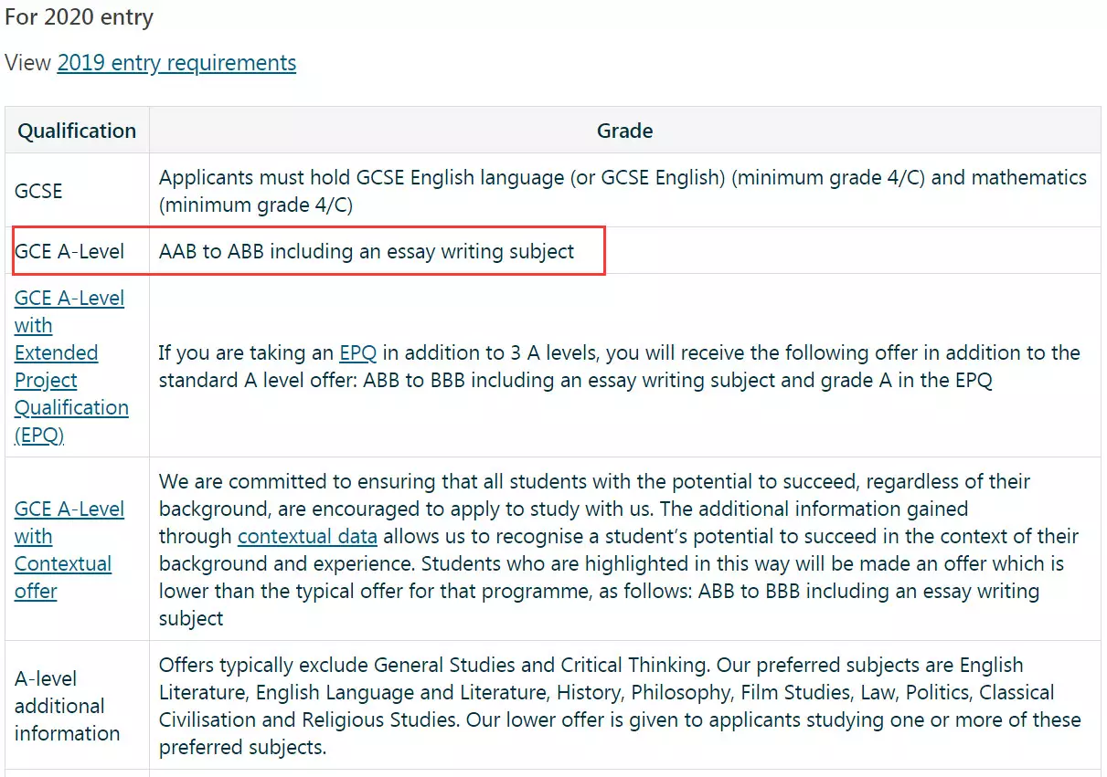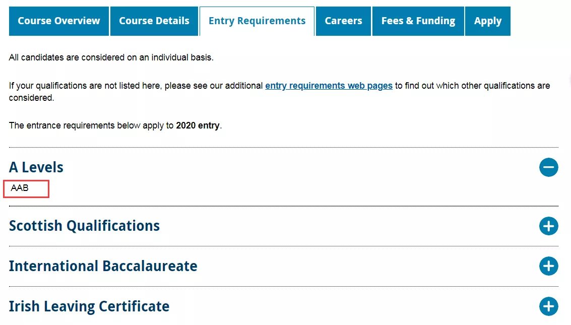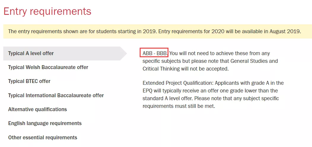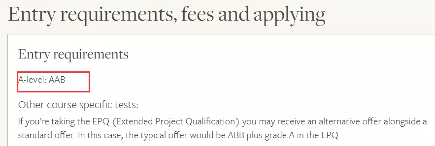 入学要求: ABB (A Levels) ; AAAA (Scottish Highers)
