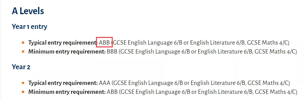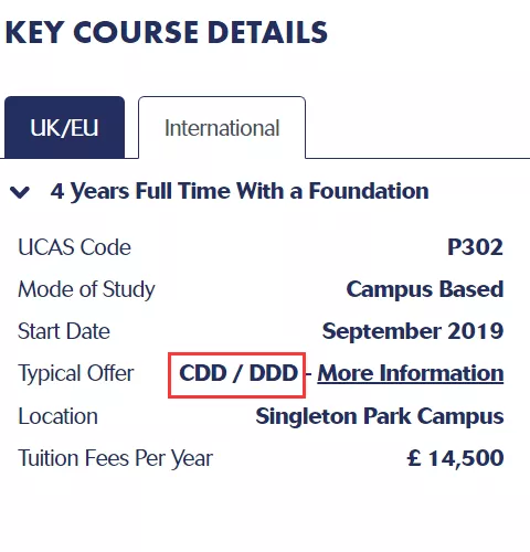 入学要求: 72 UCAS points - 大约是 DDD