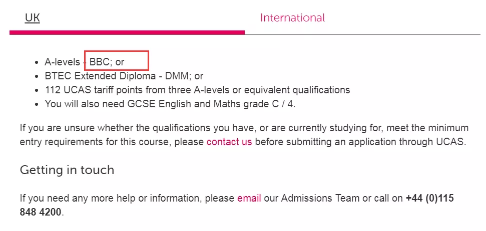 诺丁汉特伦特的传媒专业设置也特别丰富,既有传统传媒内容,也有视频创作和社交媒体等的学习,比如Broacast Journalism的入学要求: