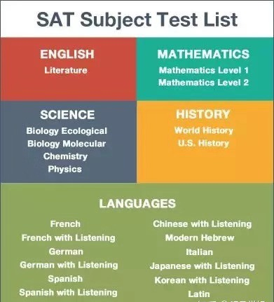 目前SAT 2 分为数学、科学、语言、英语、历史与社会科学五大类,每科满分为800分。其中:
