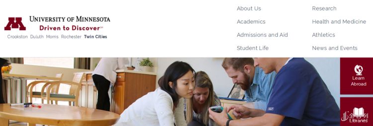 明尼苏达大学双城校区(University of Minnesota, Twin Cities,缩写UMN),建校于1851年,是全美国最有声望的公立研究型大学之一,被誉为“公立常春藤”。学校位于美国明尼苏达州明尼阿波利斯市与圣保罗市。明尼阿波利斯是明尼苏达州最大城市,人口占全州总人口一半以上。圣保罗是美国明尼苏达州的州府,也是第二大城市。明尼苏达州有一个特点就是冷,非常冷!准备来UMN的同学要做好心理准备,这里的冬天会从10月开始一直到第二年4月才结束。据2016年的数据显示UMN一共有50,678个学生,UMC一直排名在公立大学的前20位。