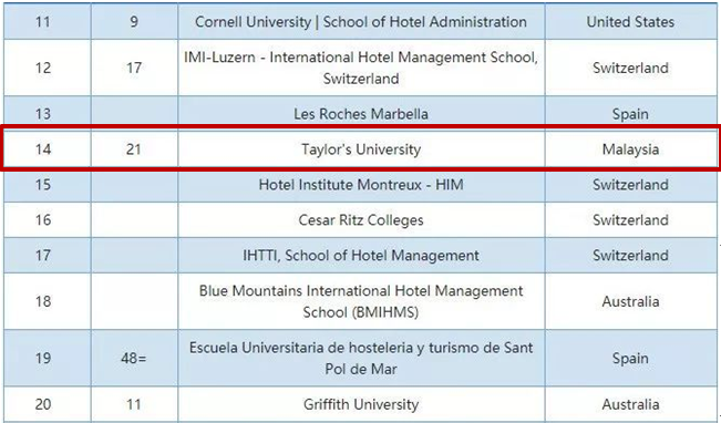 第三点:推荐的泰莱大学是马来西亚历史悠久及最杰出的私立大学,创立于 1969 年,享有崇高的信誉。 其中酒店管理学院成立于 1987 年,现在已成为酒店及旅游业管理培训的翘楚。 2019 QS 世界大学酒店管理专业排名中 , 泰莱大学的酒店管理专业位于第 19 名。至今,已有逾千学生毕业后投身酒店及旅游领域,其中不少已位居要职。他们的就业机会并不限于马来西亚。很多泰莱学院毕业生正在亚洲太平洋区工作,不少已工作在国际级酒店。