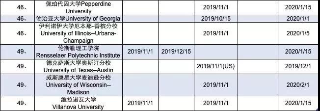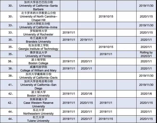《2019-2020美国TOP 50综合性大学申请截止日期》