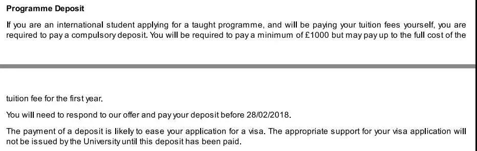 高校经常在发给学生的offer中会注明:请在4~6周内支付一定数量的占位费。此时,有必要查看学校关于押金费的具体说明,例如 是否可以退款,退款的形式和金额等等 ,大多数学校都不退还占位费。