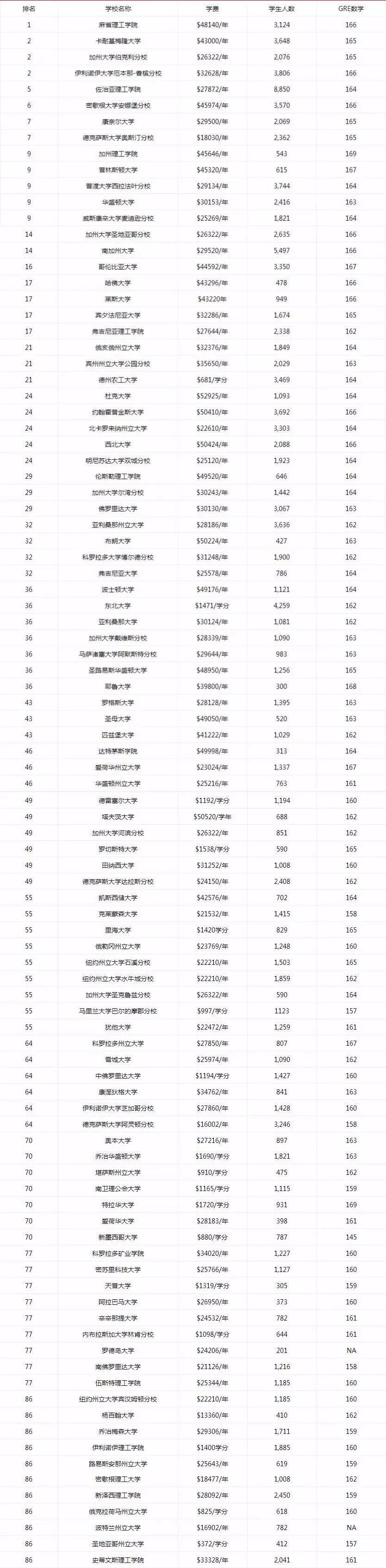 附上美国计算机专业排名