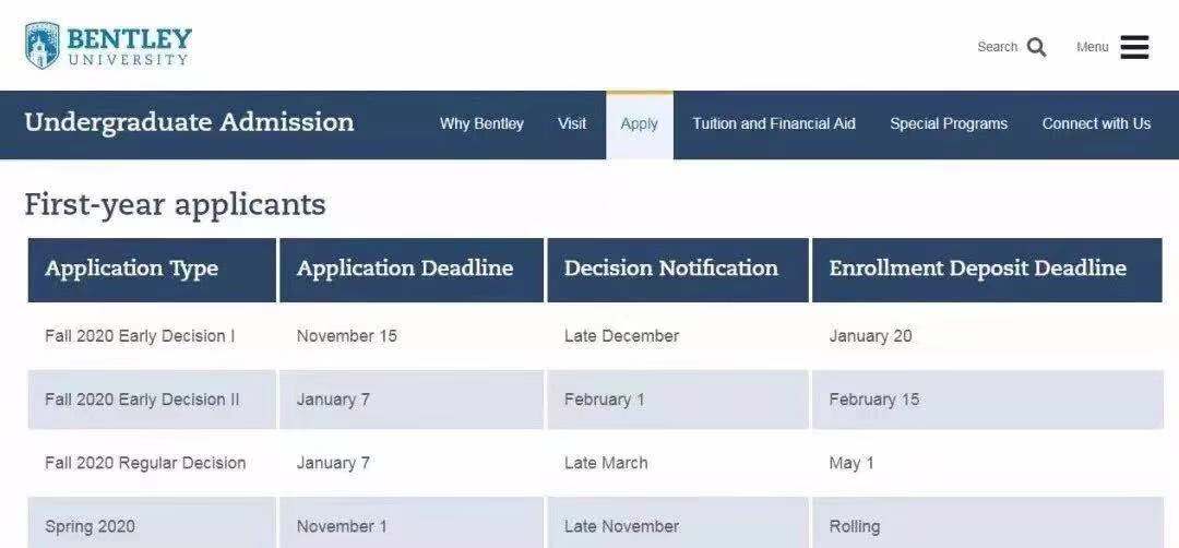 1.本特利大学今年新增了 EDII,截止日期是 1月7日,3月底得知结果;此外,EDI 在 11月15日申请截止,大约 12月底知道结果, RD 也是明年 1月7日截止,3月底收到录取结果。