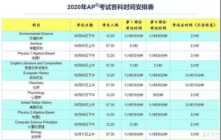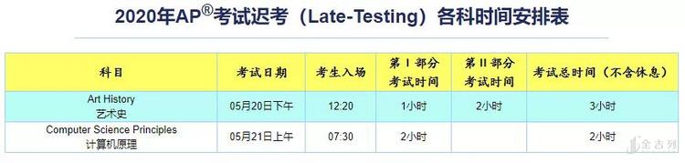 2020年AP考试时间