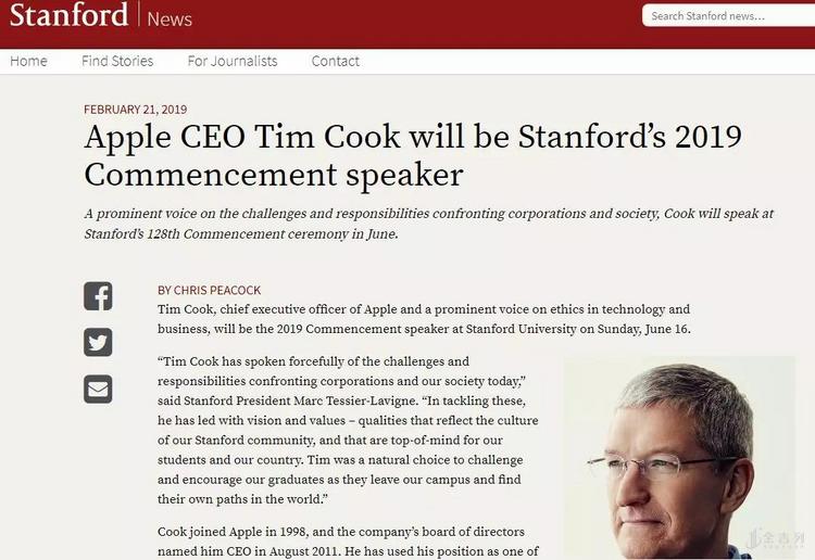 库克好忙,接受杜兰大学邀请后,又接受了斯坦福邀请。苹果公司CEO蒂姆·库克将出席6月16日斯坦福大学举行的毕业典礼,作为硅谷的好邻居,斯坦福比较喜欢邀请科技公司领导担任演讲嘉宾,乔布斯、比尔盖茨夫妇的毕业演讲还时常被大家拿出来重温,期待这次蒂姆·库克的斯坦福演讲!