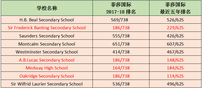 期中9所学校开设ESL课程,其对应的菲莎国际排名如下: