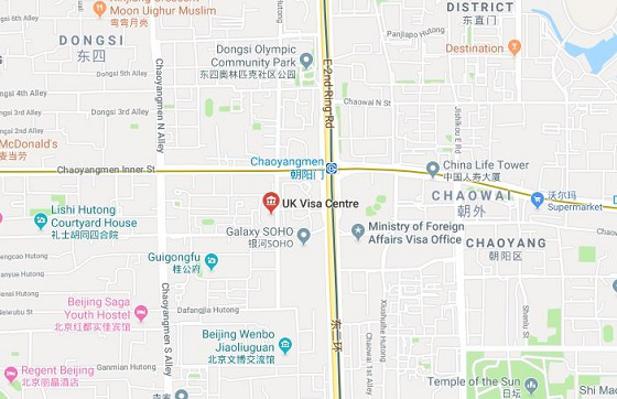 中国的英国签证是由VFS公司代理的,全国各大城市都有 英国签证服务中心,北京的签证中心地址为:东水井胡同5号北京Inn2号楼A座9层A区901-919室。在这里提醒一下大家,上海的英国签证申请中心已搬迁至:上海市黄浦区四川中路213号,就是商务大厦2层。