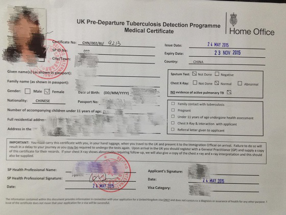 英国Tier 4签证官方规定:如果你在中国居住并且申请赴英停留超过6个月,那么你就要提供有 授权诊所开具的肺结核检测证明(Tuberculosis Screening )。如果你是回国续签英国签证,并且在六个月内返回英国,是不需要提供肺结核证明的。