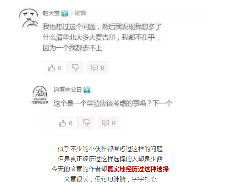 此后,我常常会想,从小的努力就是为了有选择的权利。我和小陈一步一步走到清北的门口,是为了一个好的未来,为了以后的我们可以主动选择生活,而非被迫谋生。