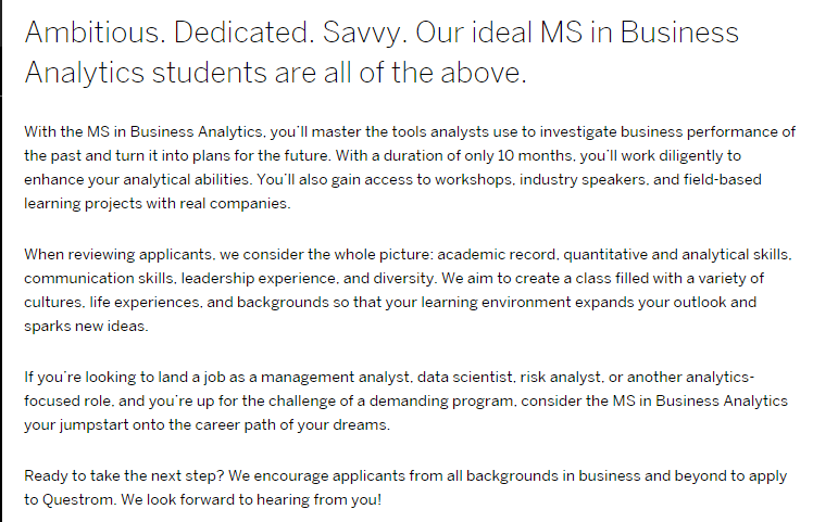 商科整体的投资回报率都不错,商业分析的起薪是非常高的,投资回报率自然也就杠杠的,毕业平均起薪12w 美金,再看看这个学费,是不是两年分分钟挣回来?