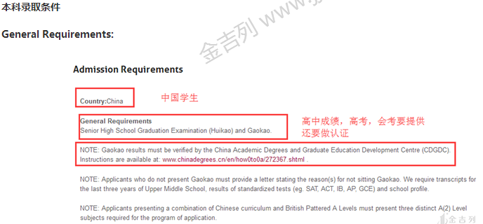 - 中国普通高中的学生要提供会考和高成绩,并且需要做 CDGDC 认证