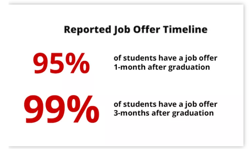 50% 的人毕业后年薪在 10万美金 以上, 99% 的人在 5万 以上 95% 的人在 毕业后一个月内 找到工作, 99% 的人在 毕业后三个月内 找到工作