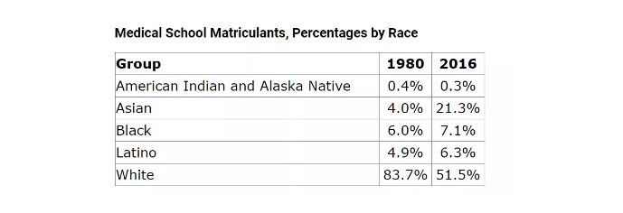 人数的增长带来的可喜变化之一是,申请者的背景变得更加多元化了,亚裔美国人和非裔美国人的比例更是达到了142%的增加,总人数增至1062名,这本身也符合“医生群体多元化的大趋势”。