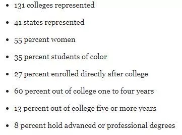 NYU对GPA的要求很高,而LSAT的要求却相对“亲民”,因此中国对于申请者而言,在争取高LSAT的同时,保持在校成绩的顶尖是获得NYU芳心的不二路径。73%的学生是毕业一年以及更久的时间才重返校园,这一数据表明,“迎娶女神校”是场持久战,“TA”更青睐阅历丰富的优秀申请者。所以除了在校时要提高各方面的硬件水平,拥有丰富的法律实践更能获取NYU的倾心。