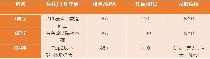 ▲ 今年 律政学员NYU录取背景