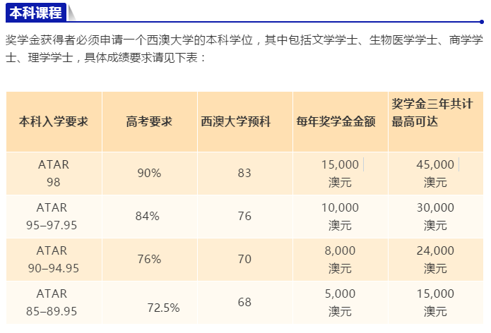 - 本科生三年阶段,奖学金金额最高可达45,000澳元
