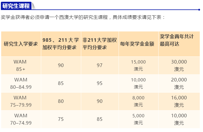 - 奖学金获得者需持有西澳大学发放的录取通知书