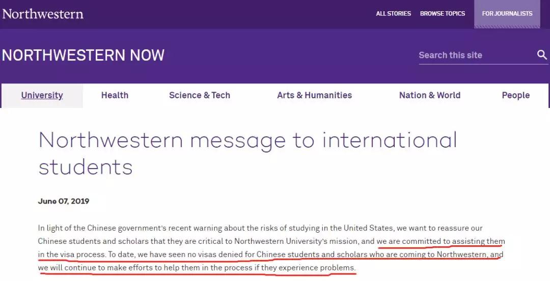 ** 在关于学生签证方面的支持,** 西北大学也于今年6月发布声明,称: “ 中国学生是西北大学不可或缺的组成部分且是西北大家庭的一员,我们有责任和义务帮助中国学子获取签证 。 到目前为止没有任何西北大学的中国学生及学者的签证申请得到拒签。 我们将继续努力确保你们顺利获得签证。 ”