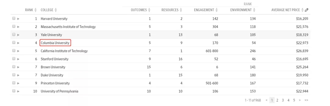 简单来说,今年的前十名并没有非常让主页君意外,除了康奈尔大学“挤掉”哥大,成功上位之外,其他学校的排名基本都在意料之中。