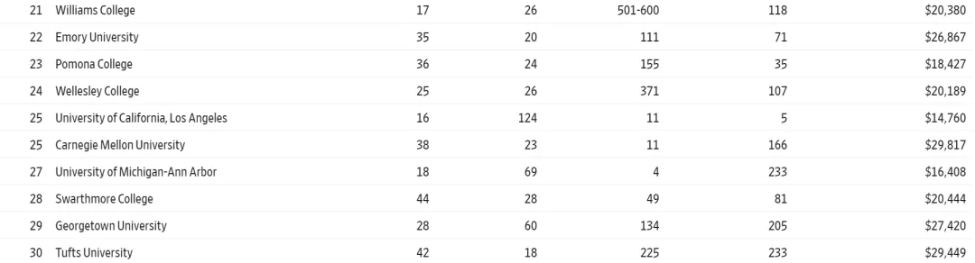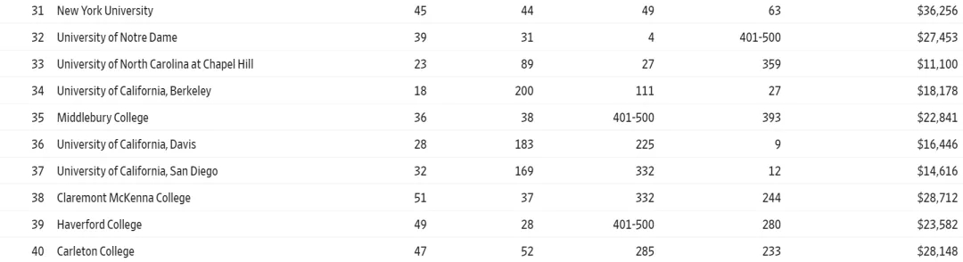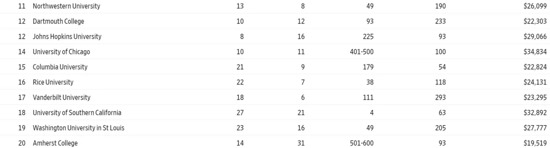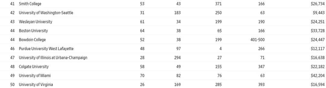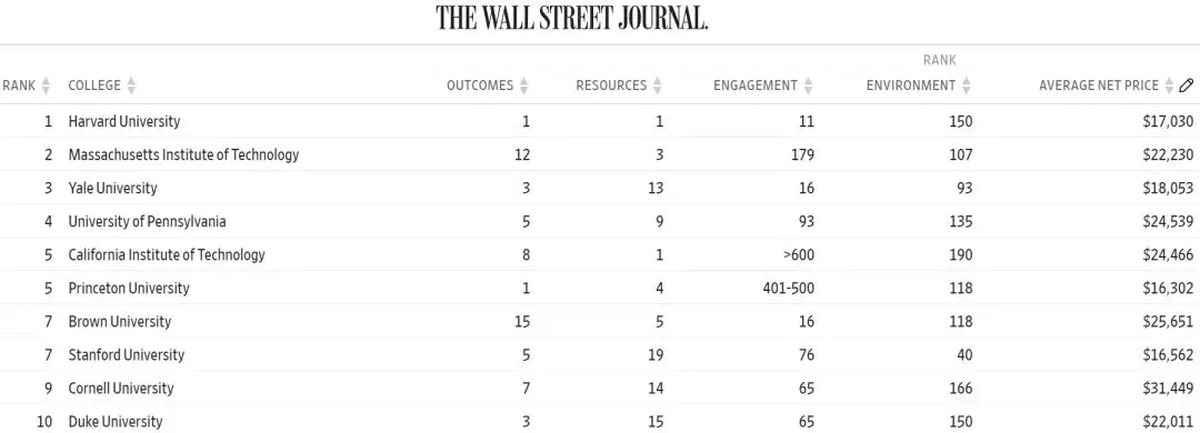 不过如今有了这份来自华尔街和THE的榜单, 也算是给大家选校提供了新的思路,给家长和同学们另一个可靠的参考 。