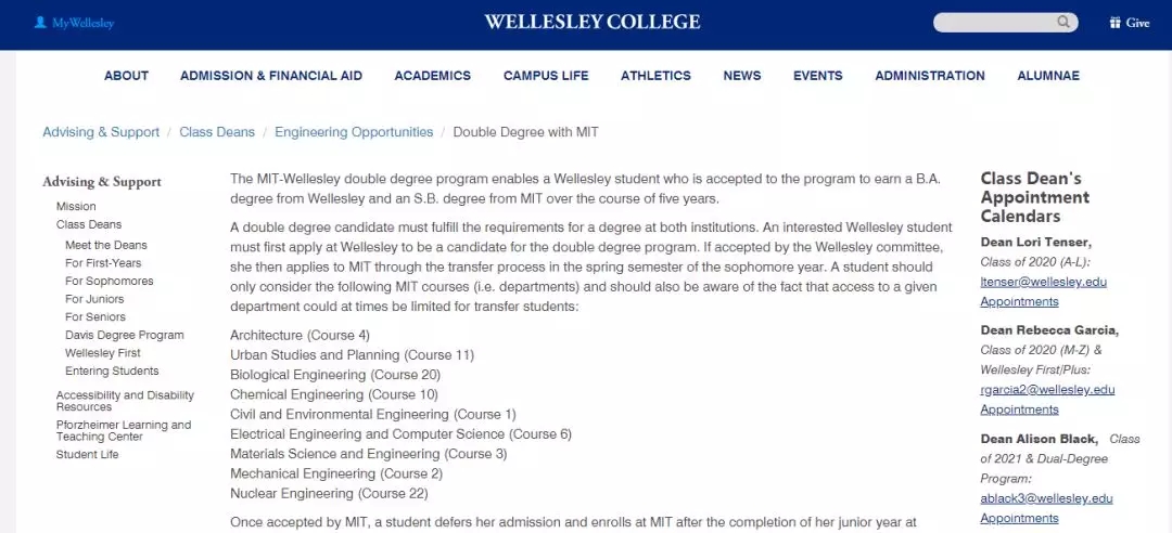 她们有一个五年制的Wel-MIT ual program合作项目,毕业拿双重学位。此外, 韦尔斯利与Babson商学院、Olin工程学院有学术合作关系。