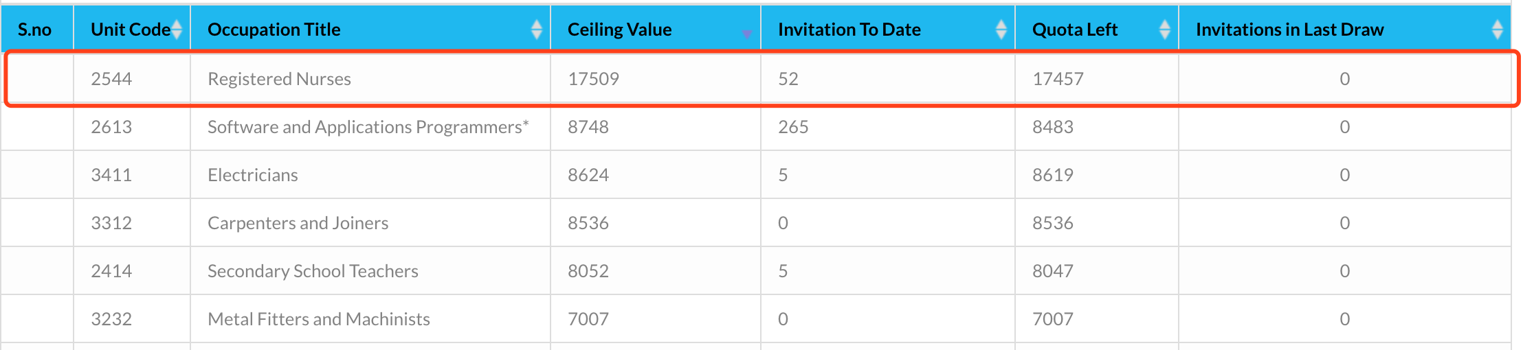 根据澳大利亚移民局发布最新财年配额清单,护理的配额是最高,但使用率非常少。所以申请移民的比较大概率的事情。如图下显示