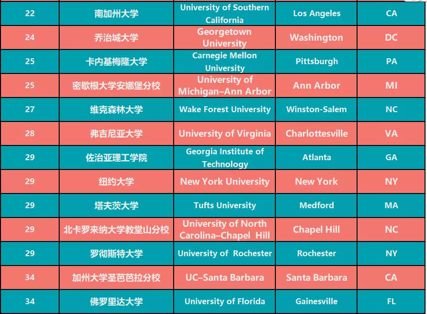 加州大学圣芭芭拉分校掉出TOP30,排第34
